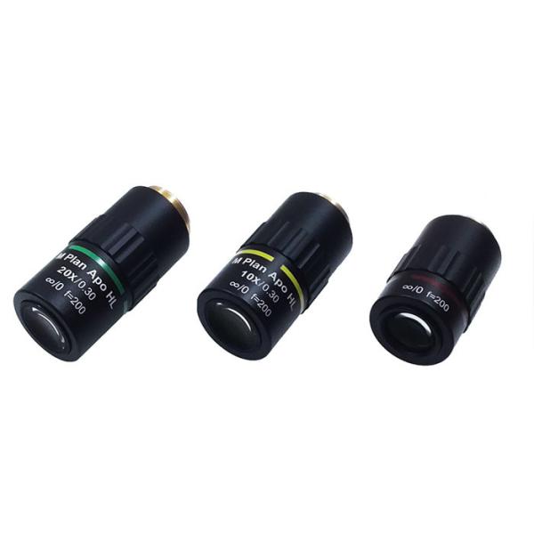Achromatic objective lens is a common objective lens, which is composed of several groups of positive and negative glued lenses with different curved radius. It can only correct the axial color difference of red and blue light in the spectral line. At the same time, the spherical aberration of the point on the axis and the smart aberration of the point near the axis are corrected. This objective can not eliminate the secondary spectrum. It only corrects the spherical aberration and chromatic aberration of the yellow and green wave areas, but does not eliminate the residual chromatic aberration and the spherical aberration and chromatic aberration of other wave areas, and the bending of the image field is still large, that is, only the clear image in the middle range of the field of view can be obtained. When in use, yellow green light should be used as the lighting source, or yellow green filter should be inserted in the optical path. This kind of objective lens is simple in structure, economical and practical. It is often used with Fugen eyepiece and correction eyepiece. It is widely used in medium and low power microscopes. In black-and-white photography, green color filter can be used to reduce the residual axial color difference and obtain photos with good contrast.