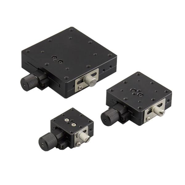 Precision manual translation stage PT-DC series products, the main material is aluminum alloy, high sensitivity, small size, using dovetail guide rails, driven by threaded pairs, this series of products has good sensitivity. The table top has various sizes and moderate thickness, and can be combined in single or multi-dimensional. This product can still maintain a strong load capacity, especially when it is used in the vertical direction or as the Z axis.